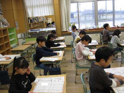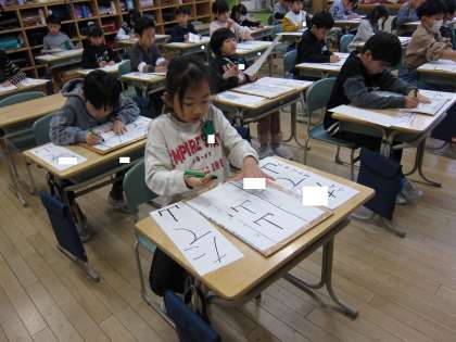 子供たちは、手本をしっかり見て、力強く、大きな字を書いていました。