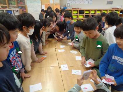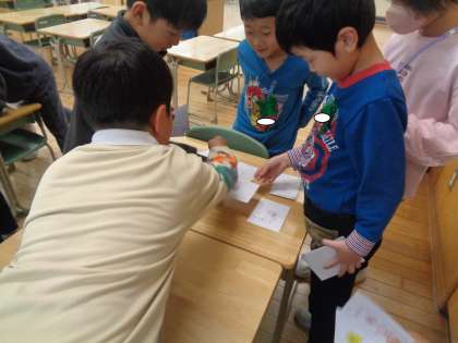 国語では、「ものの 名まえ」の学習をしました。今日は、前回作った「一つ一つの名前(商品)のカード」を使って、クラスのみんなでお店やさんを開きました。