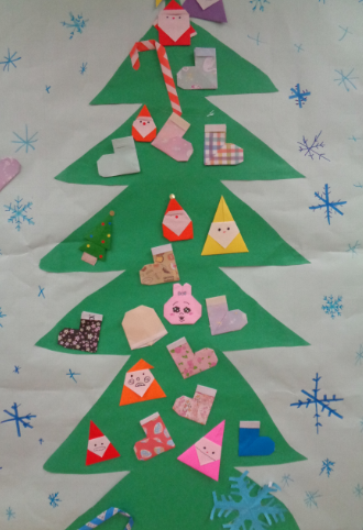飾り係が5−2のクリスマスツリーをみんなで作るために、かわいい飾りを作ってくれました。今教室に掲示してあります。