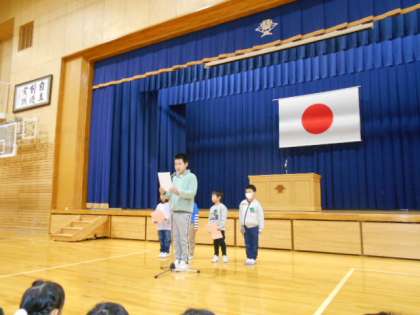2学期の終業式が行われました。子供たちは校長先生の話に熱心に耳を傾けていました。