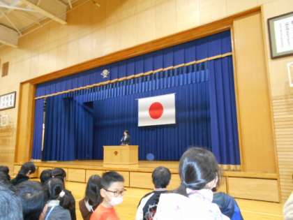 2学期の終業式が行われました。子供たちは校長先生の話に熱心に耳を傾けていました。