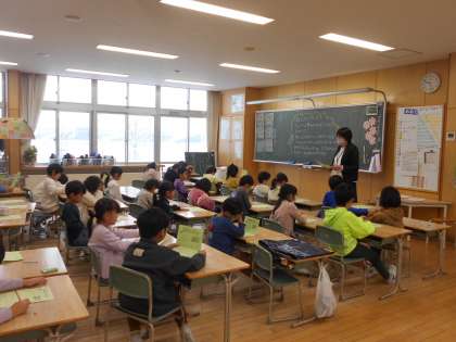 教室に戻ってから、担任の先生からあゆみをもらい、2学期の頑張りを確かめていました。