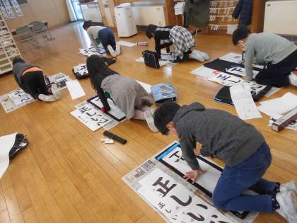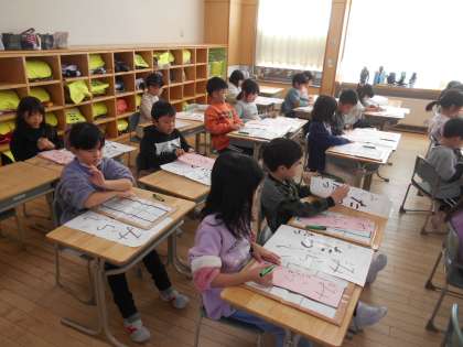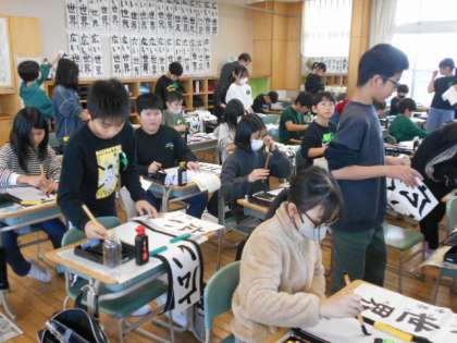 書き初め大会では、各学年の課題に真剣に取り組みました。