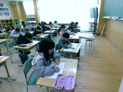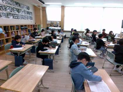 2年生では、国語科でチャレンジテストに向けた復習をしています。今日は漢字の書き取りをしました。