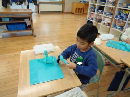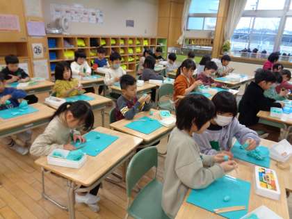 図工では、自分といっしょに散歩に行きたい仲間を思い浮かべて、ねん土でつくりました。