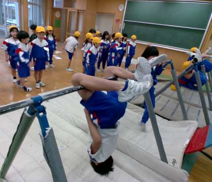体育の学習では、鉄棒や的あてゲームに取り組みました。