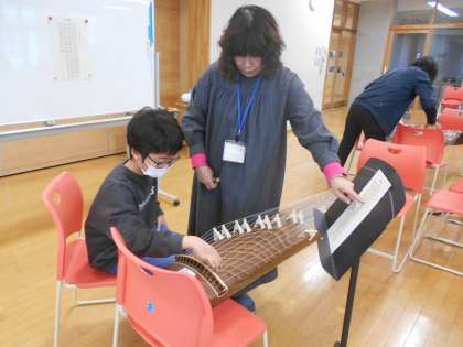 今日の音楽の時間は、和楽器の「琴」を体験しました。初めて演奏する琴にわくわくドキドキの子供たち。楽譜を見ながら「さくら」の演奏にチャレンジしました。楽器に親しむことができて、とても嬉しそうな表情をしていました。