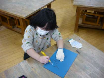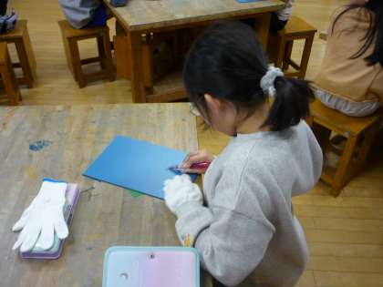 3年生は、版画の学習で初めて彫刻刀に挑戦します。彫刻刀の正しい持ち方や彫り進め方を教えていただきました。「まっすぐ彫れた!」と、嬉しそうな表情の子供たちでした。どんな作品が出来上がるか、楽しみですね。