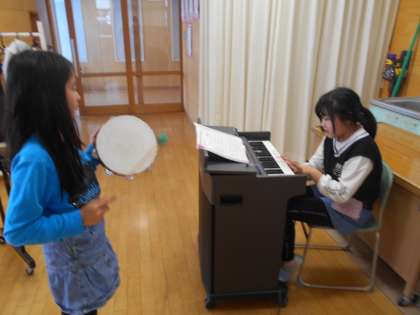 音楽の時間は合奏に取り組んでいます。「自信をもって合わせられるようにしたい」と、自分のパートの練習を一生懸命しています。