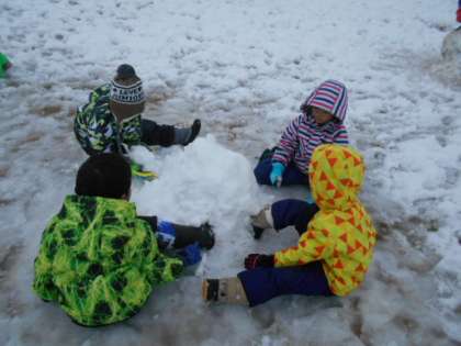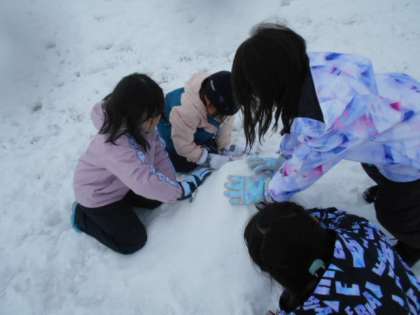 生活科「ふゆをたのしもう」で、雪遊びをした様子です。