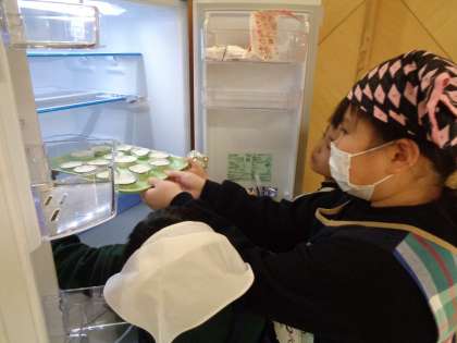 お菓子づくりを通して、友達と協力したり、役割を譲り合ったりする姿がたくさん見られました。初めての料理でも、手順を守っておいしくつくることができたようです。