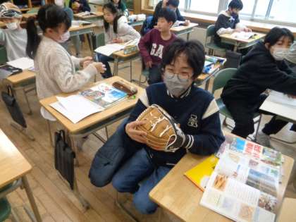みんなうれしそうにグローブに触れていました。晴れたらキャッチボールをしたいですね。