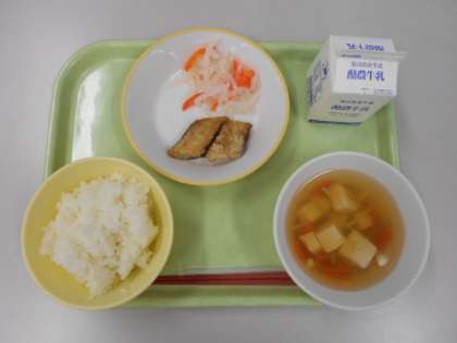 ごはん、ぎゅうにゅう、さかなのかばやき、なます、すましじる