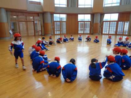 ゲーム係さんがゲーム集会を開いてくれました。みんなで楽しく「ハンカチ落とし」をしました。会の進行やルール説明など、自分たちの力でできるようになりました。
