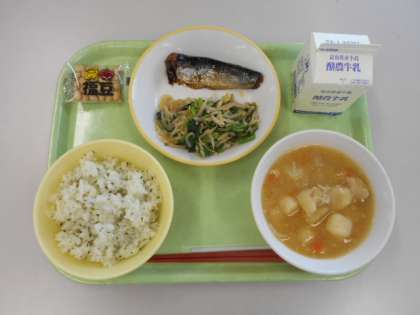 なめし、ぎゅうにゅう、いわしのとさに、こうみあえ、とりにくとじゃがいものうまに、せつぶんまめ