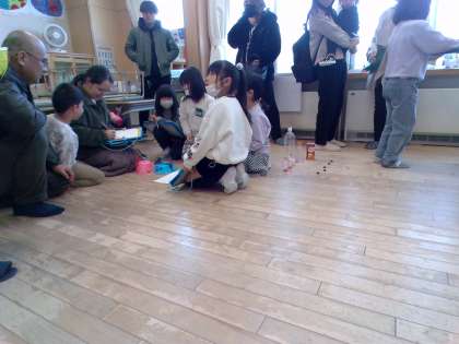 今日の学習参観では、お家の方々からアドバイスをもらったり、一緒に遊んだりしました。子どもたちは、「的を大きくしたほうがいいな」「ゴムをもう少し太くして丈夫にしたい」など、いただいたアドバイスから一年生招待に向けてこれからもがんばろうとする姿が見られました。