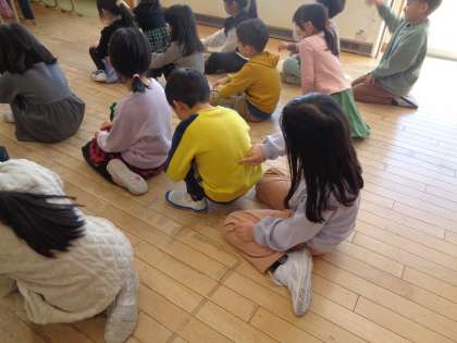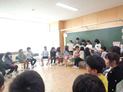 国語科「おにごっこ」の学習では、教材文で学習したことを生かして、自分たちで選んだ「あそび」の遊び方について、友達に説明しました。どんな言葉が大事か考えながら説明文を書き、説明をした後、その「あそび」をみんなで一緒にしました。きまりや工夫をしっかり伝えることで、その「あそび」の楽しさをみんなで味わうことができました。