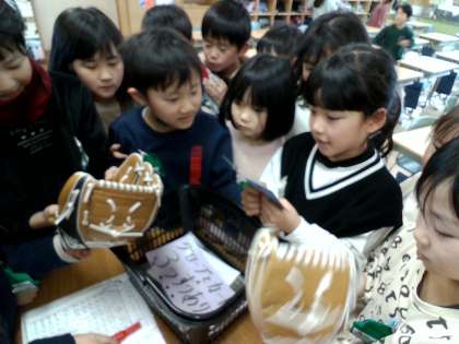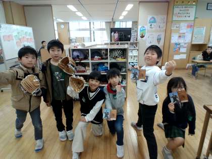 今日は、メジャーリーガーの大谷選手から寄贈された野球グローブを鑑賞しました。子どもたちは、身につけながらキャッチボールの真似をする様子が見られました。その中で、野球に興味をもったり、やってみたいという気持ちをもったりする子どもたちもいました。