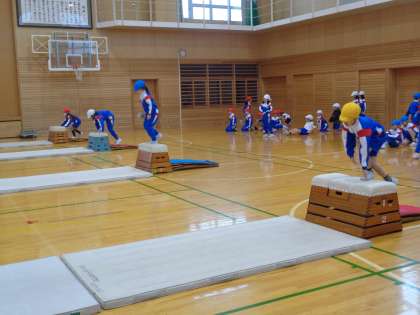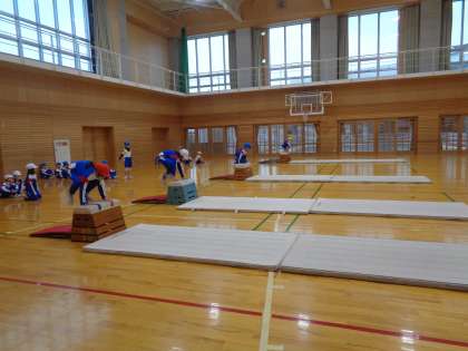 今日は、跳び箱をしました。子供たちは、「かっこいい中忍になる」というめあてに向かって頑張っています。跳び箱から降りる姿や着地をかっこよくしようと工夫する姿が見られました。これからも一生懸命取り組み、できる忍術を増やしていこうと意気込んでいます。