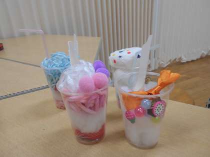わかば級では、今お店屋さんごっこが盛り上がっています。わかば1組では「ジュース屋さん」と「お寿司屋さん」、わかば4組では「パフェ屋さん」が開店しています。今日はわかば級の4年生のお姉さんたちが遊びに来てくれていました。みんなで仲良く楽しむことができました。