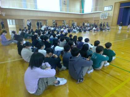 4年生は来年度から始まる委員会活動について関心をもつとともに、卒業生への感謝の気持ちを伝えるために児童会引き継ぎ式に参加しました。どの子供たちも、緊張の面持ちで来年度から始まる委員会活動への期待と卒業生への感謝の気持ちを高めていました。