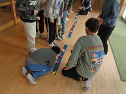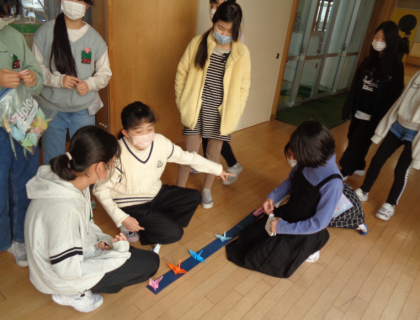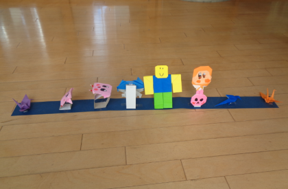 全校の皆さんが安全に廊下歩行をしてほしいという願いを込めて折り鶴ロード活動を行っています。今回は、全校の皆さんに折り鶴だけでなく、いろいろな仲間たちを織ってほしいとお願いしました。素敵な折り鶴ロードができました。