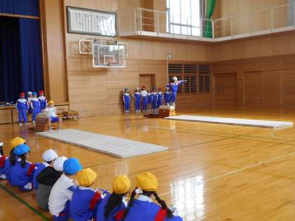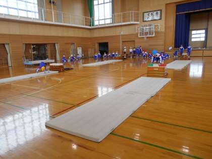 今日は、2学期からかっこいい忍者になることを目標に取り組んできたマット運動と跳び箱を使った中忍試験を行いました。