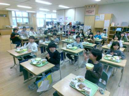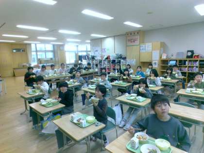 2年生は、6年生の卒業プロジェクトで給食を6年生と食べました。思い出ムービーを見せてもらうなど楽しい時間を過ごせました。