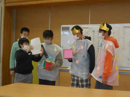 なぞなぞやゲーム、プレゼント渡しをして楽しむことができました。