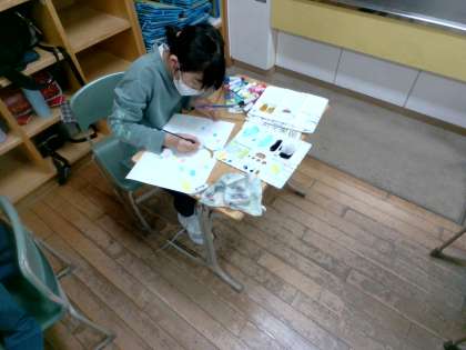 ダークで恐ろしいモチモチの木や、明るくてきれいなモチモチの木など、それぞれの子が感じたことを楽しみながら表現しています。