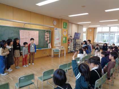 今日は、1年間がんばってきたごほうびに、集会をしました。それぞれのチームごとに、発表の内容を考えて、今日まで準備を進めてきました。