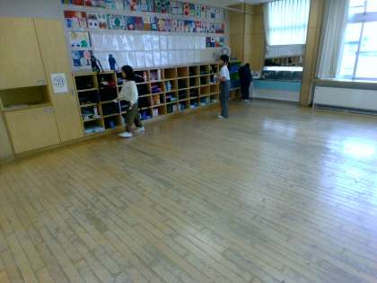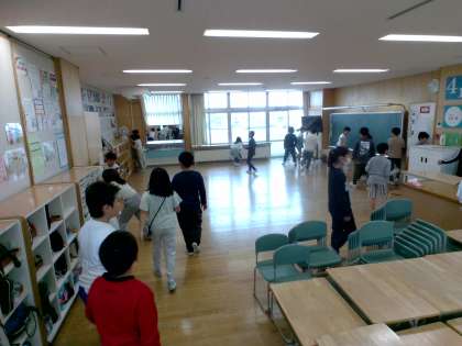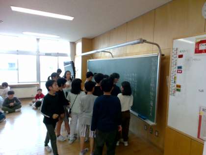 長休みの時間に「遊び係」発案で、クラス全体を使って宝探しゲームをしました。