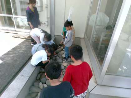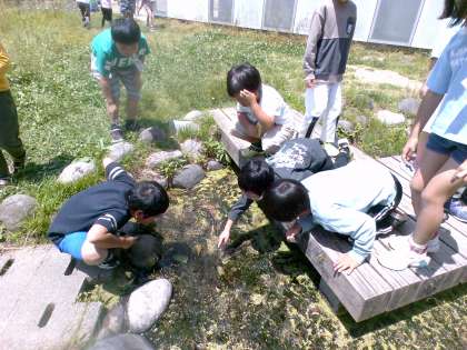 生活科で虫や水に住む生き物を探しました。石を動かして下にいる生き物を探したり、水場を覗き込んでメダカを観察したりしていました。今後は自分の好きな生き物を決めて、虫かごや水槽で飼う予定です。
