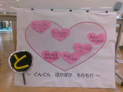 今日は5月の学年集会を行いました。学年目標の「ハート」が今月は4つも増えて子供たちはとてもうれしそうでした。「もうすぐ増やせそうなハート」「まだ足りないけれど、みんなで目指したいハート」についても話し合い、たくさんの意見を出し合いました。1年生のころと比べて、集団として周りを見る力が少しずつ身に付いています。