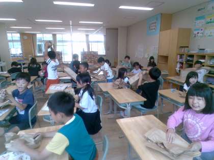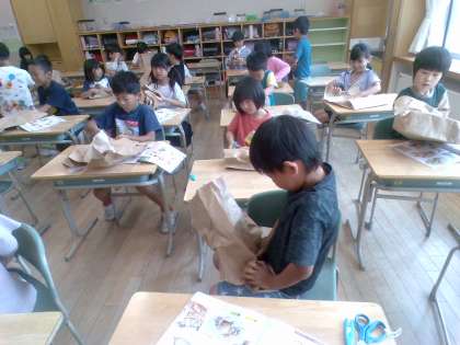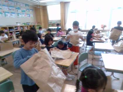 袋をくしゃくしゃしてどんな形になるかな。楽しみだね。