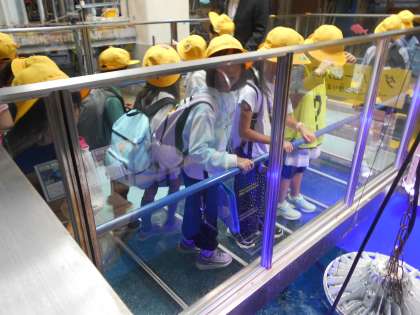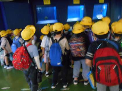 魚津水族館では、班ごとに魚を観察しました。お魚ショーを見ることもできましたよ。