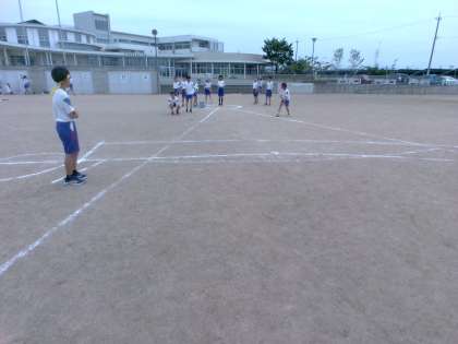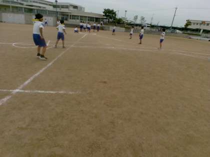 ソフトボール投げを行いました。球を投げる人、拾う人に分かれて実施しました。なるべく遠くに飛ぶよう、投げる角度を意識して取り組んでいる子もいました。