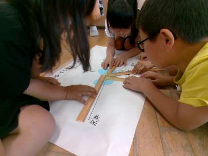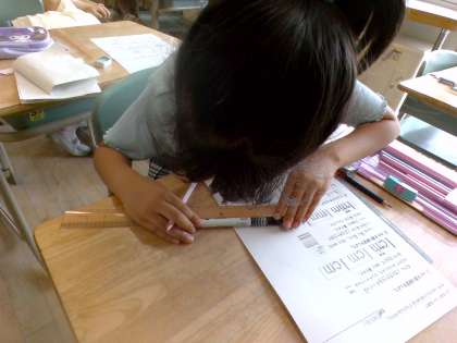 算数科では、30cmものさしを使って身の回りのいろいろなところの長さを調べています。0に合わせたり、めもりを詳しく読み取ったりして正確に長さを測っています。
