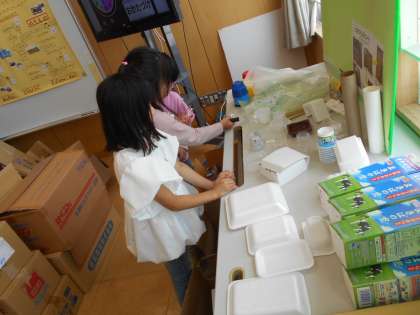 「わくわくタウン」の活動では、友達と一緒に材料を選んだり、本を参考にしながらつくったり、自分の想像力を活かしながらつくったり、それぞれの方法でつくりたいものに向かってがんばっています。