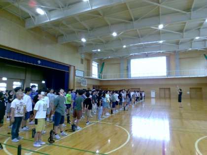 歌唱指導の先生をお招きして、発声練習や校歌練習を行いました。声を出すために体を動かすことの大切さを教えていただいたり、日本語の歌では発声しづらい音をきれいに出すための口の体操を一緒にやっていただいたりするなど、楽しく歌唱することができました。秋のオーバードホールでの式典に向け、少しずつ練習を積み重ねていきます。