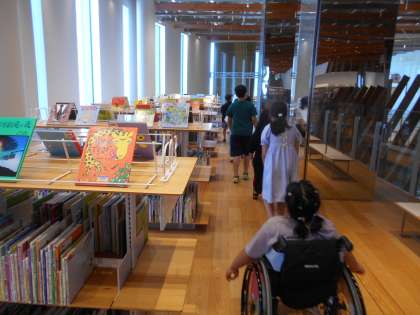 富山市ガラス美術館(キラリ)と富山市立図書館に行ってきました。美しいガラスがキラキラと光るような外観や杉の板ががたくさん使われたあたたかみのある建物に感動しました。「何を表現しているのだろう」と想像力を膨らませながら、きれいな色の作品に見入っていました。