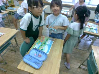 外国語活動では、色の言い方を学習しています。今日は色当てゲームをして楽しみました。