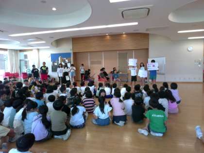 6年1組の子供たちは、あいさつを豊田っ子に広めようと、ミニ集会を企画しました。劇を通して、あいさつの大切さやどんな生活になるかなど、具体的に説明していました。
