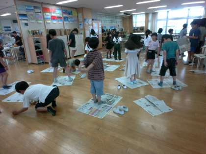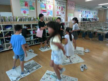 6年生が考えた活動をフレンドリー活動で行いました。このチームは、新聞じゃんけんをしました。