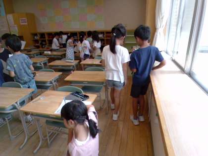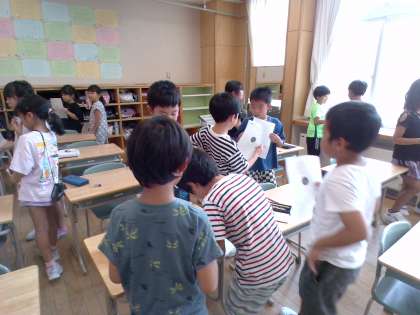久しぶりに子どもたちの元気な様子を見ることができてとてもうれしいです。夏休みの思い出をビンゴをしながら振り返りました。マスをうめようと沢山の友達にインタビューすることができました。
