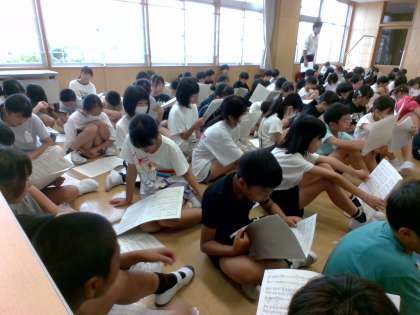 10月の音楽会、150周年式典に向けて練習が始まりました。楽譜を見ながら歌詞の意味を考えたり、一通り音程を確認したりして、初めて学年で活動をしました。また休み時間やお家でも練習をしていきましょう。