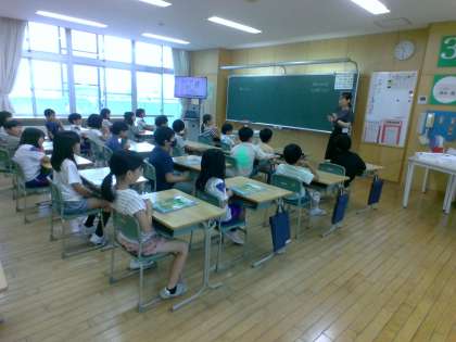 図画工作科では、2学期から一緒に授業をする須田先生と自己紹介をしたり、授業の約束を確認したりしました。