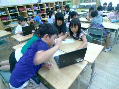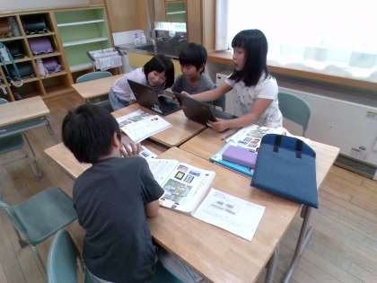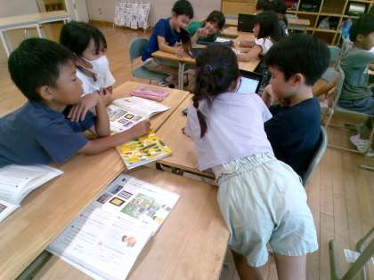 休みの日に見つけてきた看板や標識を紹介し合って、工夫を見つけています。普段何気なく見ているものの中にも、いろいろな意味や考えが含まれていることを感じました。