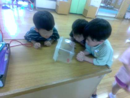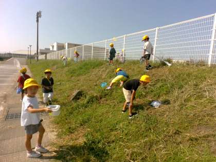 生活科の学習で、虫のお世話をします。学校で虫がいそうなところを話し合い、みんなで探しに来ました。虫が苦手な友達の虫取りを手伝ったり、エサはなにかを教え合ったりと仲よく活動しました。