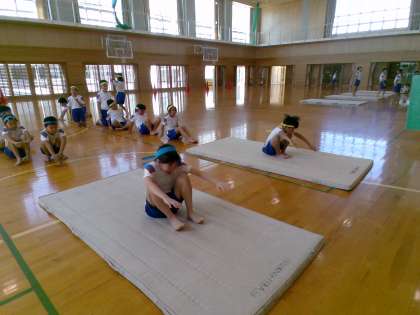 マット運動「つないで決めよう!〜4合わせマット運動〜」に取り組んでいます。久しぶりのマット運動なので、前転と開脚前転の復習をしました。自分のできる技を増やせるように友達のよいところを見つけながら練習に取り組みました。